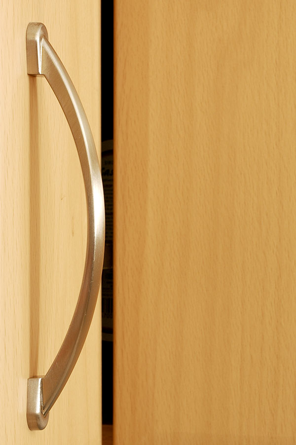 A bútor bükk vákuumfóliás frontokkal készült enyhe kerekítéssel az éleken.