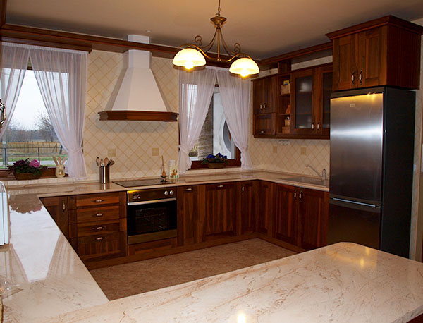- Szinte teljesen kőrbe ér a munkalap a konyhában